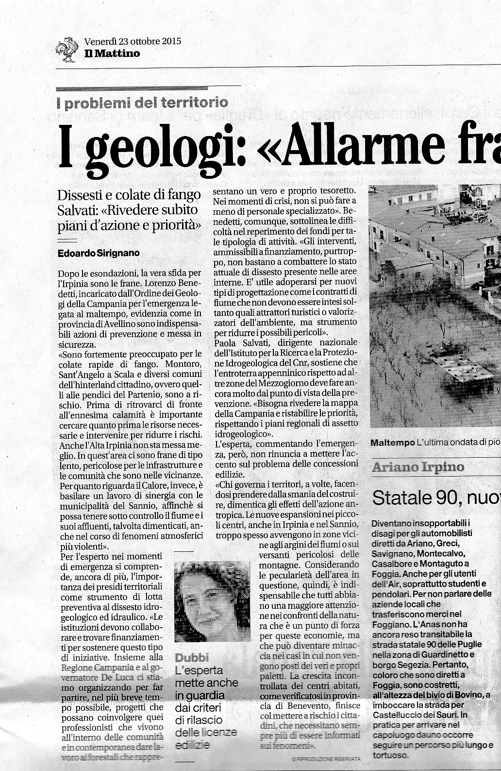 Intervista a Paola Salvati, Ricercatrice del CNR IRPI di Perugia, su "Il Mattino" del 23/10/2015